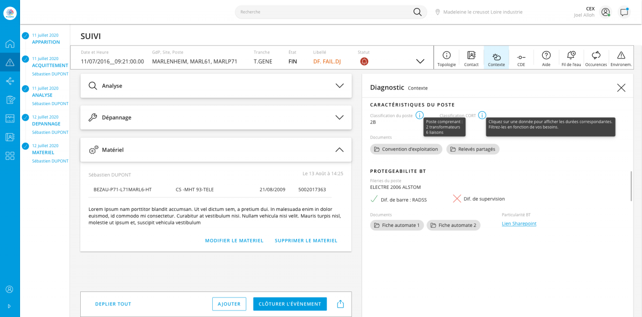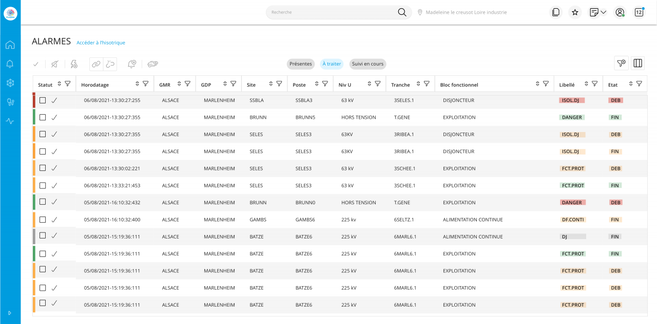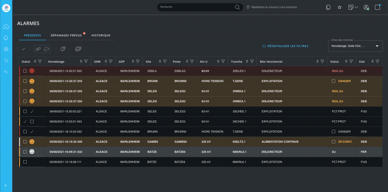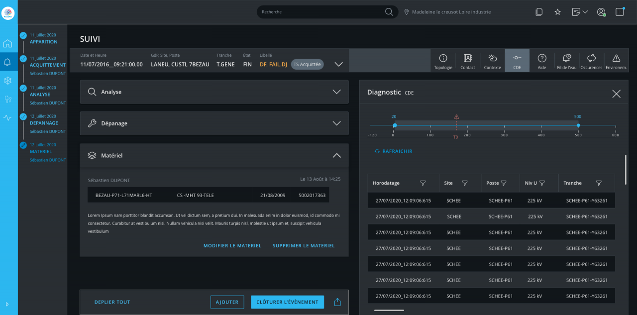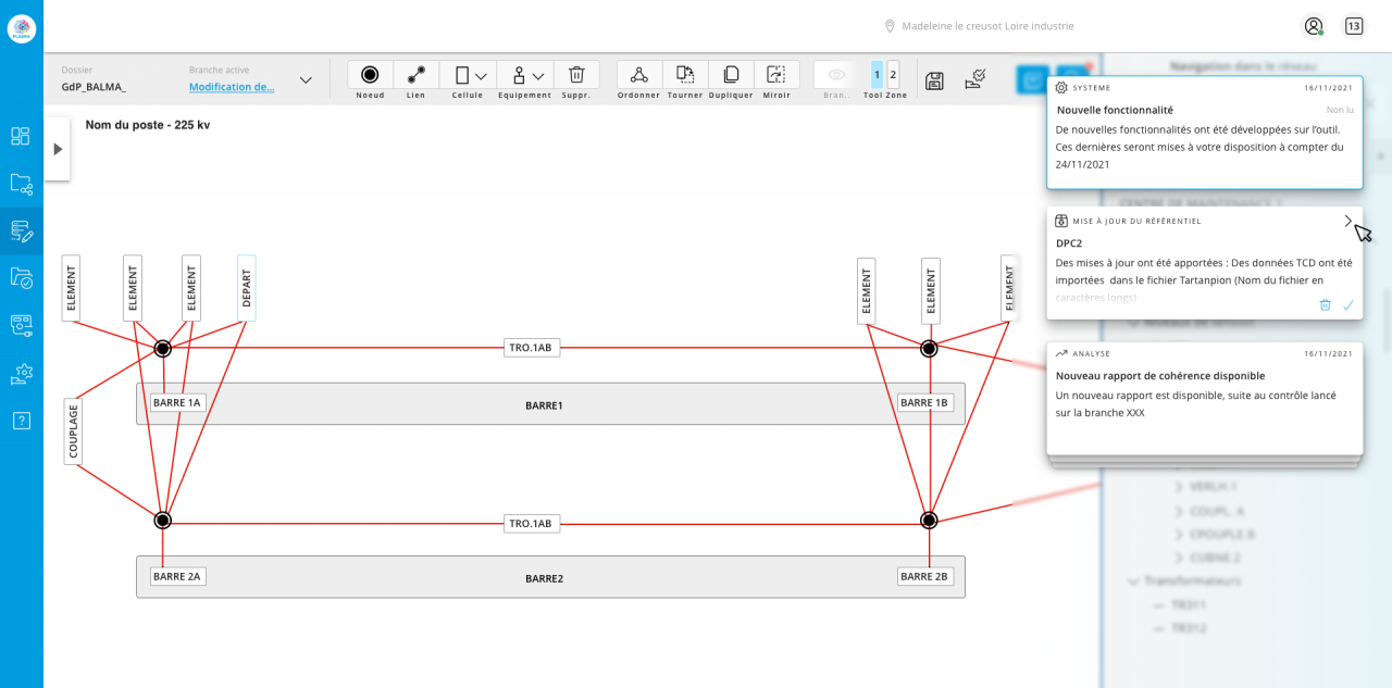 L’ utilisateur doit être alarmé par l’outils des différents dysfonctionnements rencontrés sur le réseau. Il peut également visualiser l’état des lignes électriques par le biais d’outils et d’écrans axés sur des technologies novatrices. Voici quelques écrans maquettés pour illustrer les besoins métiers des PO (assez techniques)